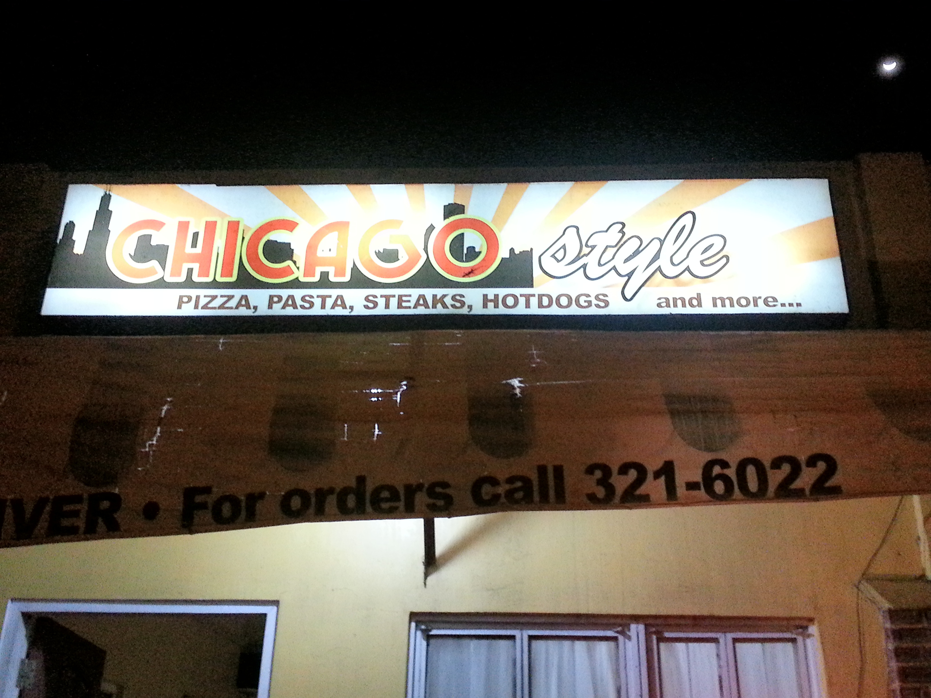Lines like these would have been (in my rather unpolished writing) passable introductions to crime thrillers or some Zimmern-esque travelogue about to detail the search for some grotesque delicacy enjoyed by a dying tribe in the mountains. But that’s a story reserved for another post. Instead, we were headed to the rather unassumingly named, Chicago-Style, a small pizzeria marked by an equally unassuming neon sign. It’s the type of place one wouldn’t hesitate driving past in search for the more popular Shakey’s or Pizza Hut or would only turn to in times of need.