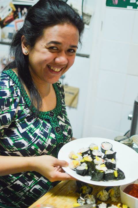 Behind us, a modified Brazo de Mercedes was being constructed. The usually spongy, artery-blocking but ultimately soul-opening cake was being prepared to be frozen. Modification and fusion were the theme of the night as each dish for this potluck running on Filipino-time was partly assembled, partly cooked in the tiny kitchen.