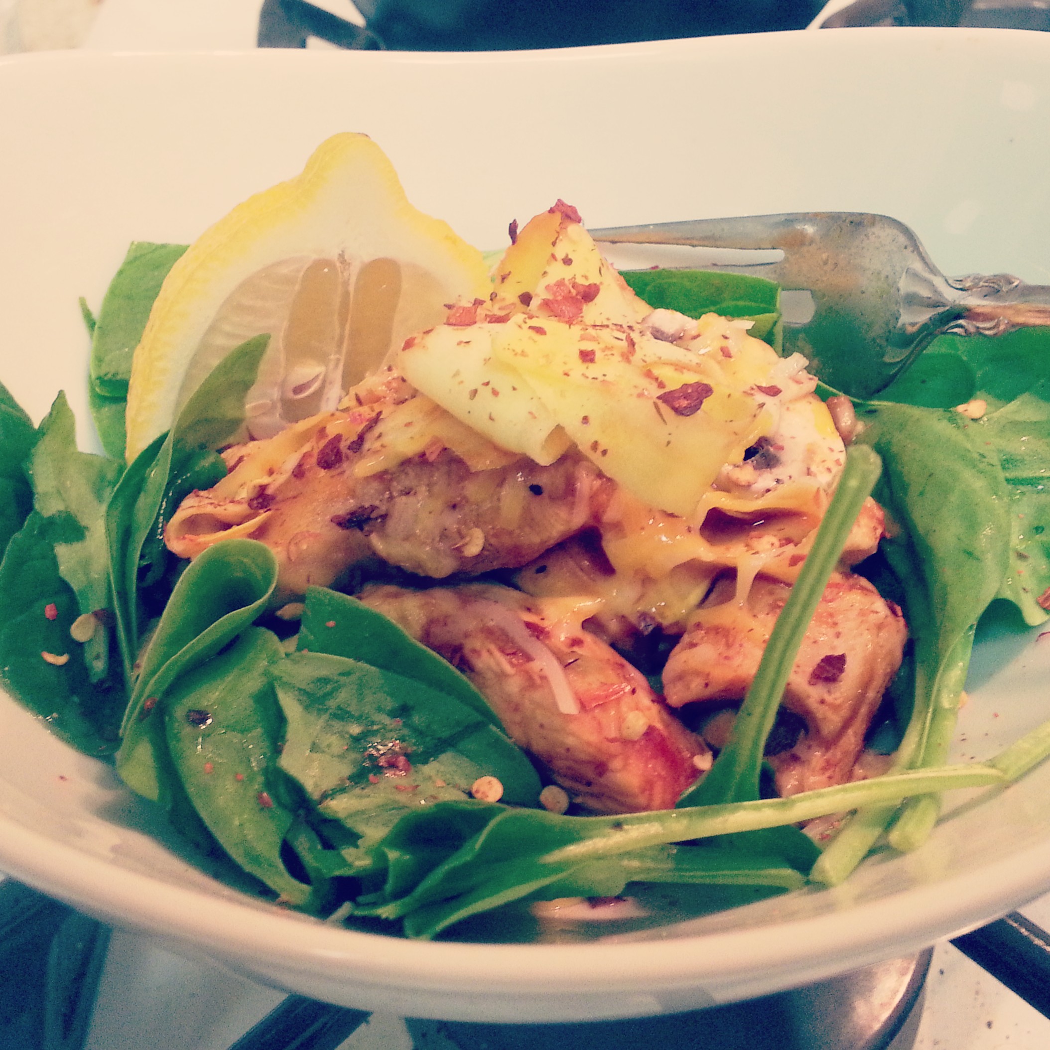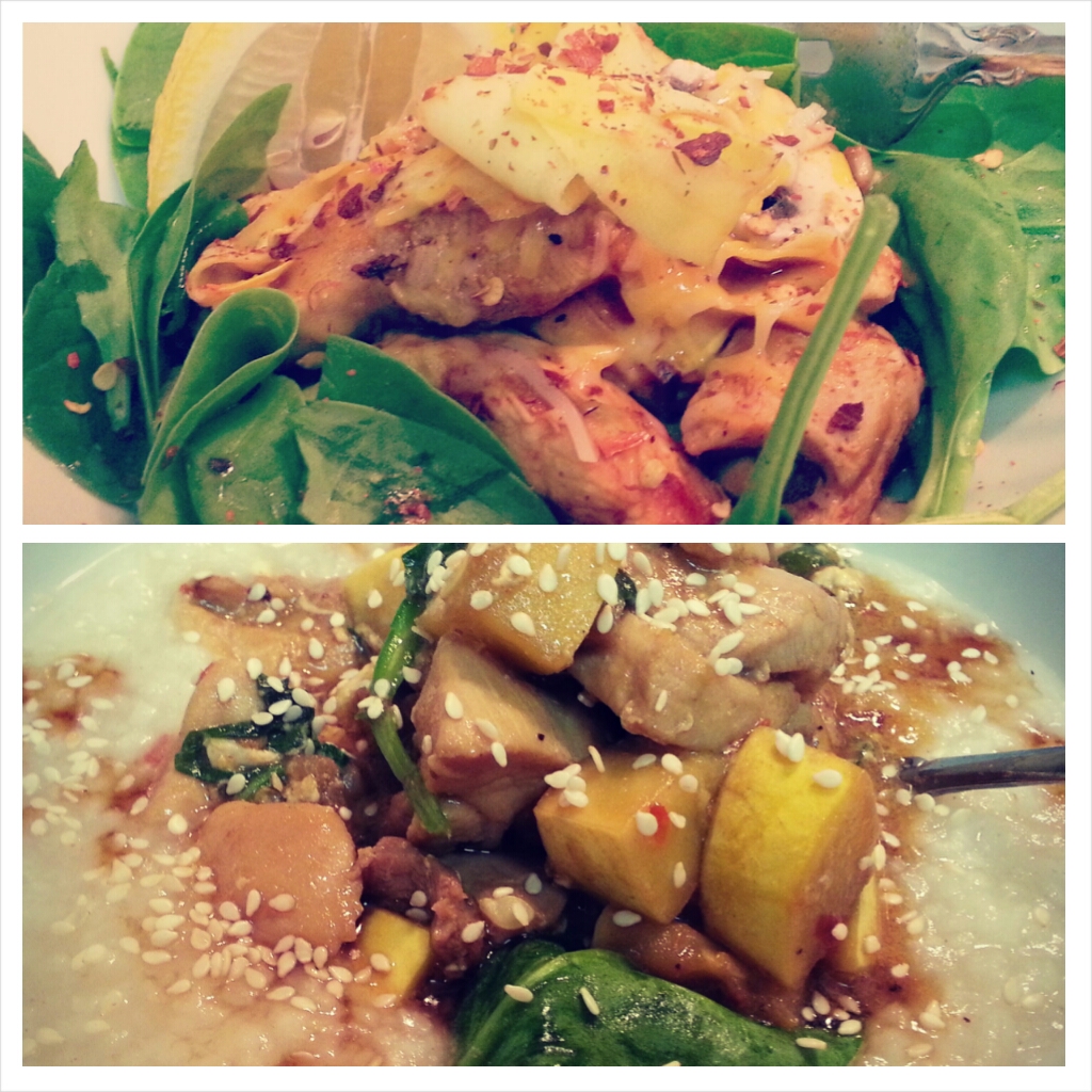 Aaaaannnddd we’re back with the next couple of Busy Season Dinners! And since we’re all extra broke this week (don’t lie!), I’m sharing TWO recipes! Just so happens that these two dishes share almost exactly the same ingredients so to stretch our wallets (and the last vestiges of our dignity), why not make double the variation? The first is a twist on the buffalo chicken salad and/or a regular chicken pasta with red chilli flake-dusted chicken breast and summer squash “pappardelle” (more on that later) over some greens. The second, for those colder nights (y’all heard about yet another storm coming in this weekend?! Apocalpyse is nigh!), is a plain Lugaw, or rice porridge (similar to congee), topped with chicken breast that’s seasoned a little bit differently and summer squash chunks. They’re similar enough to share costs yet different enough so that you won’t feel like you’re eating the same dish day in, day out.