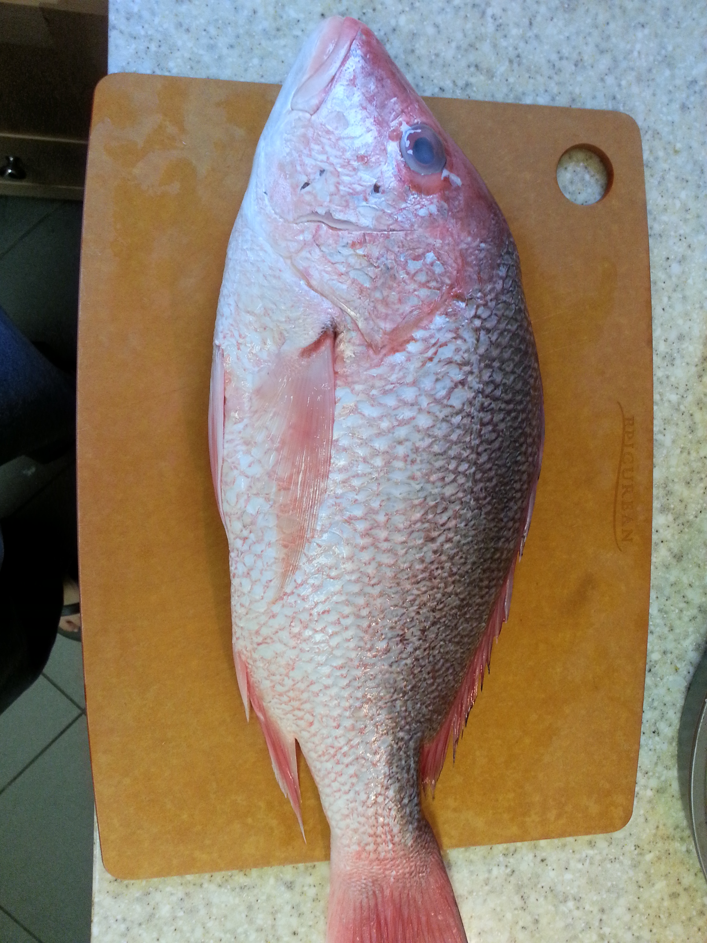 1 Red Snapper tail extending to the midsection, cleaned and descaled (you can definitely substitute filets especially if you can’t find a whole snapper but it just won’t be the same. If you’re feeling boss, cook the whole fish!)