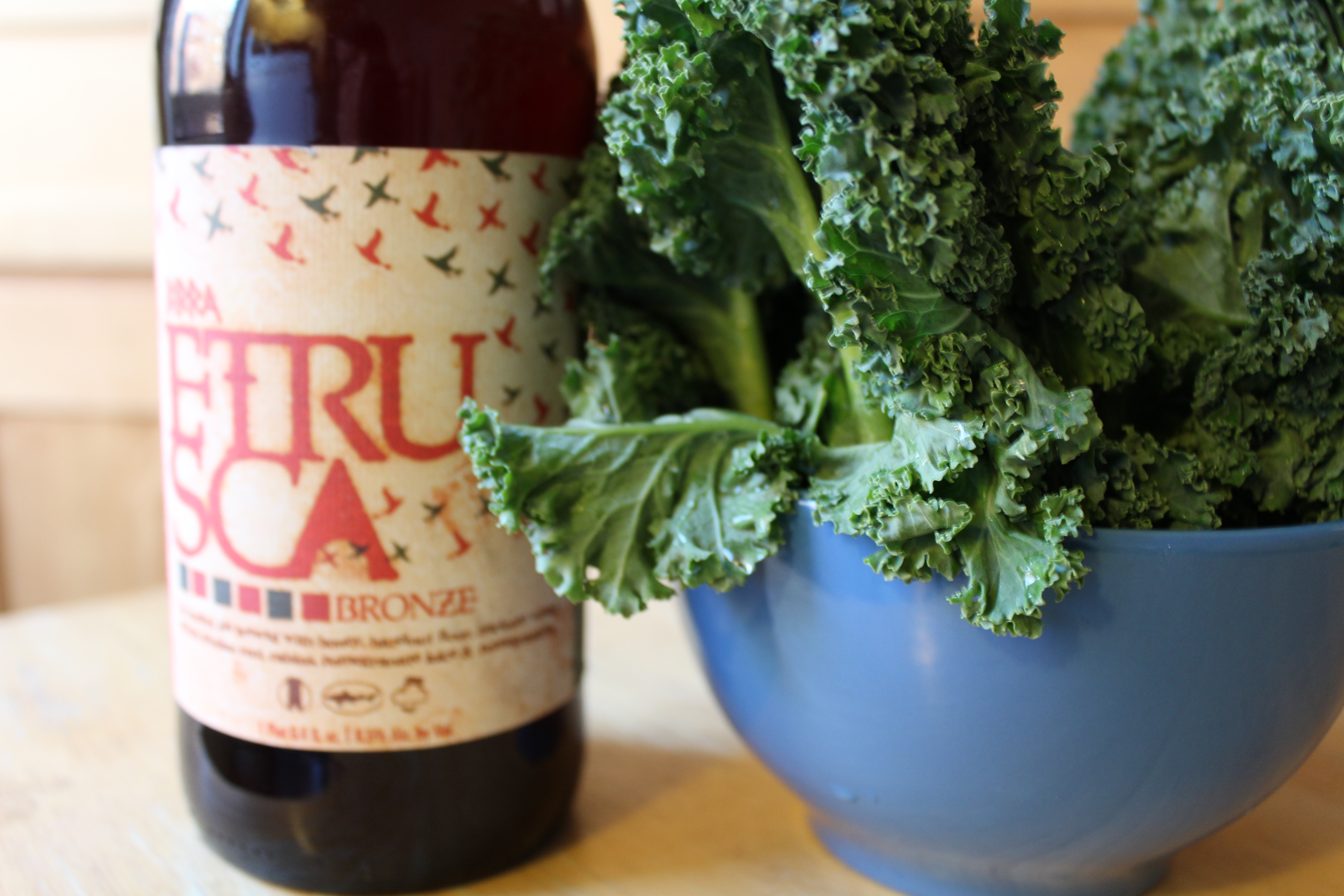 A head of kale, stems removed and roughly chopped (see the pattern here?)