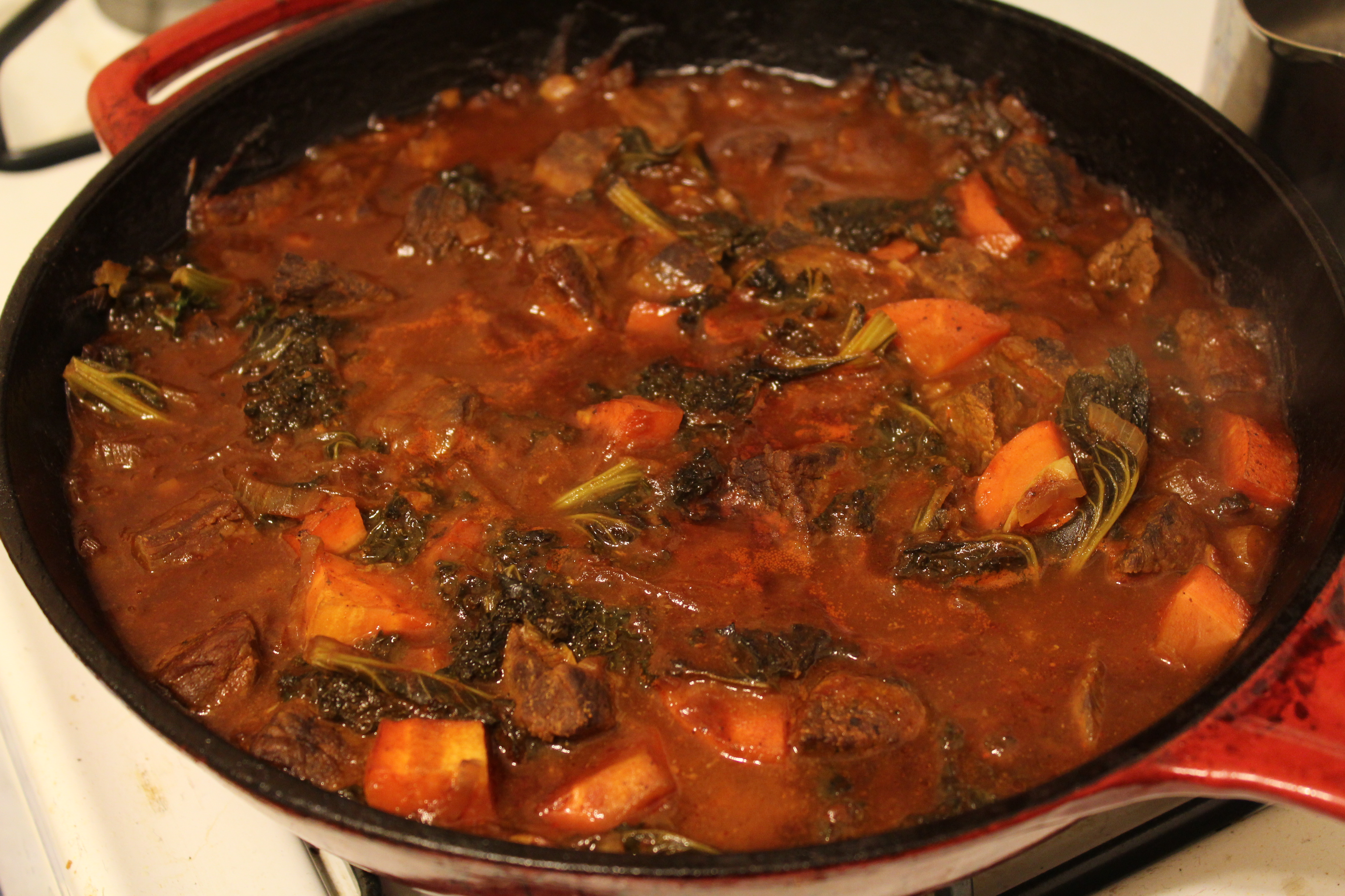 But I digress…faced with the impossible decision between comfort or breaking my diet…I said “Screw it! I’ll have both!”. Rather than the usual boxed fettucine, I opted to hand-make gnocchi with sweet potato (the de facto – and what seems like the solo – carb option to the health conscious) and pair with with a kale and beef ragout.