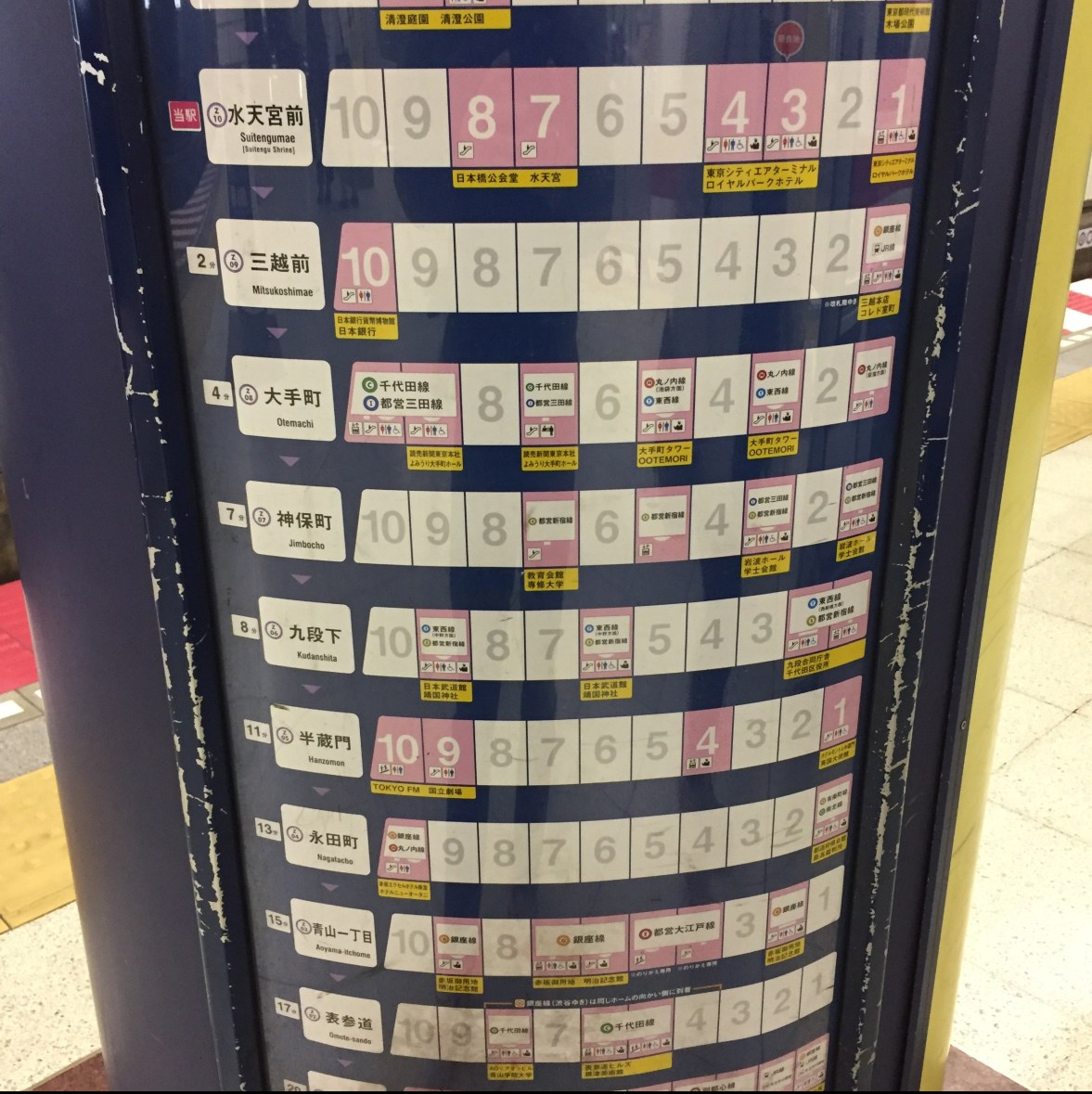 Every car matched with corresponding subway exits on every stop…