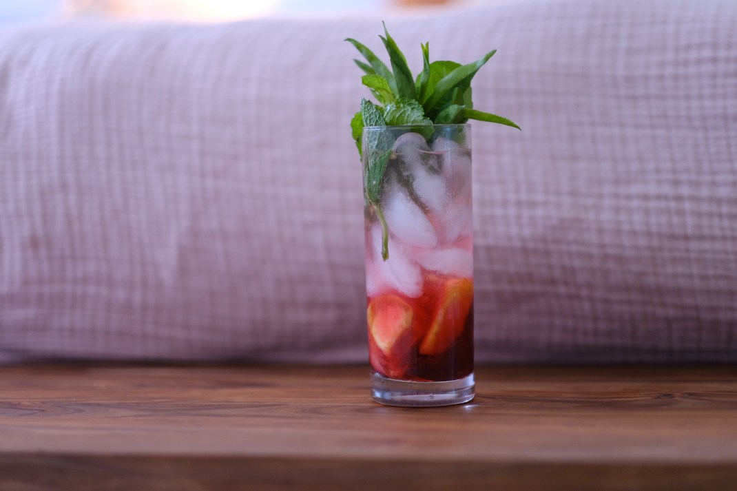 This classic Israeli drink used to be made with a simple homemade mixture of soda water and fruit syrup. Over the years the syrups have gotten cloying and the drink declined in popularity against bigger soda brands. I tasted a revived version of this at Café Levinsky 41 in Tel Aviv whose proprietor Benny Briga uses a variety of house-made syrups, homegrown herbs and spices, and countless other ingredients fermenting and curing in large jars behind his counter. The result is far from artificial and since no two orders are quite the same, you’re hit with a different aroma and flavor each time. Mine, first made in honor of Juneteenth, uses the following: