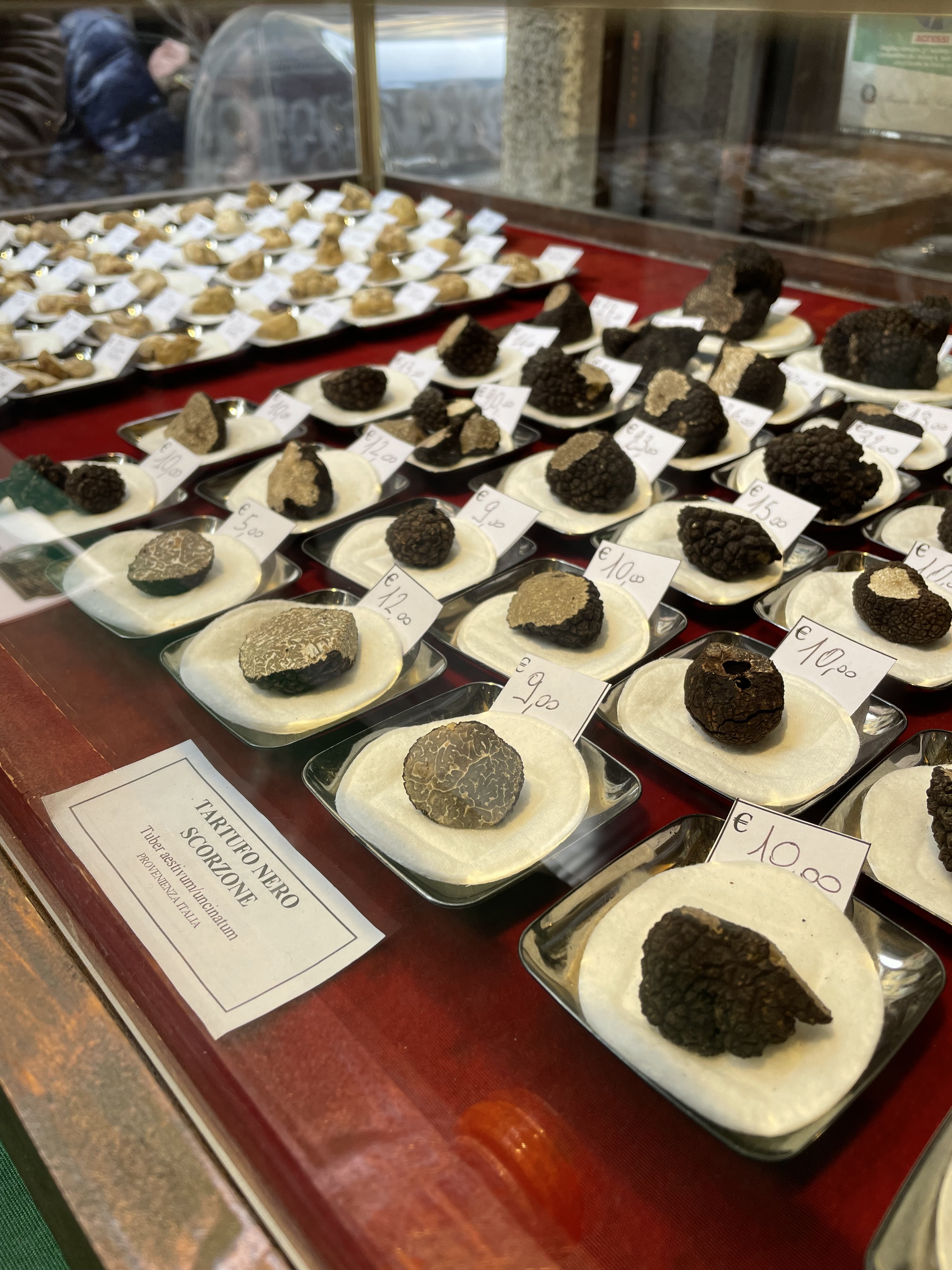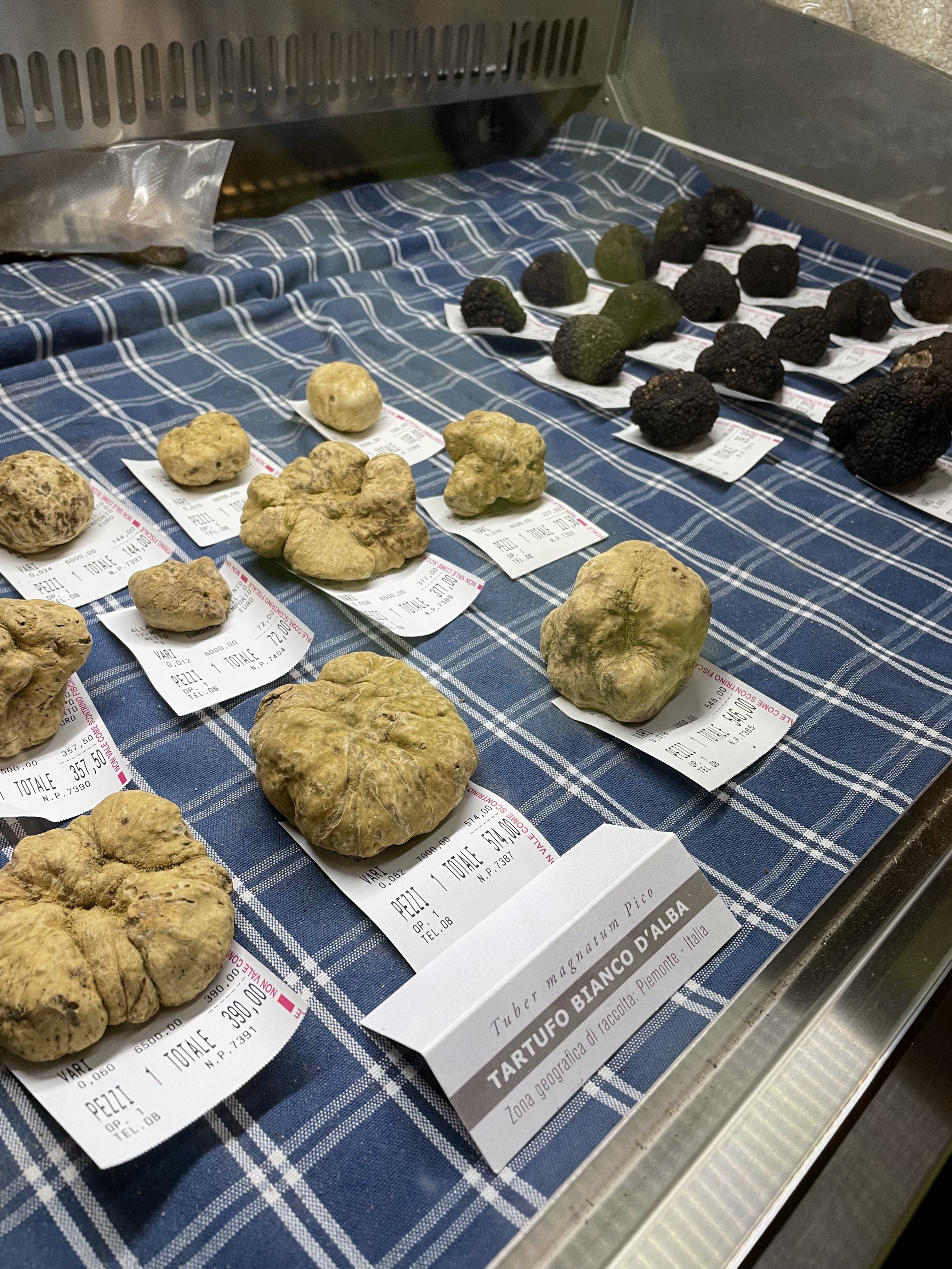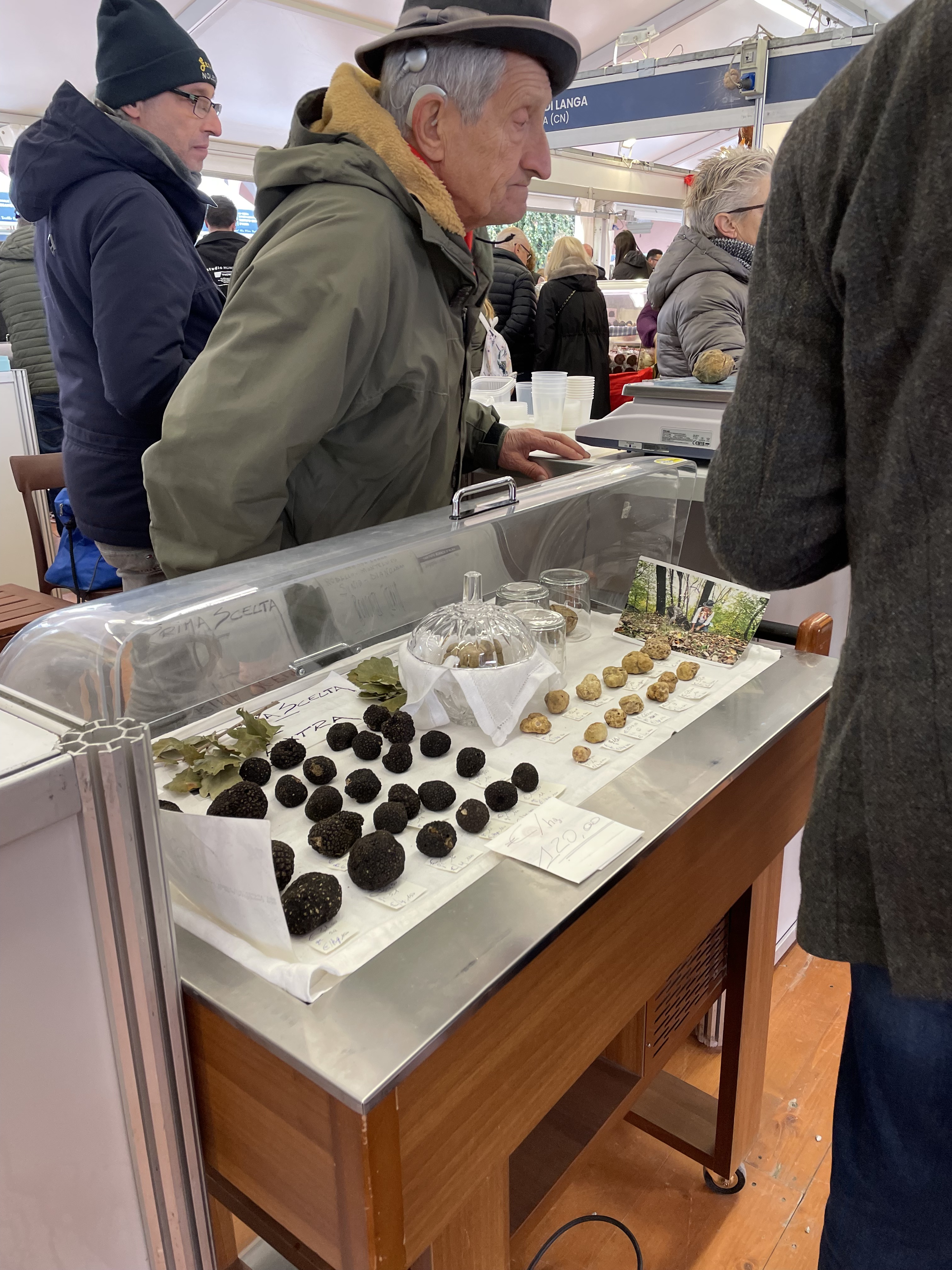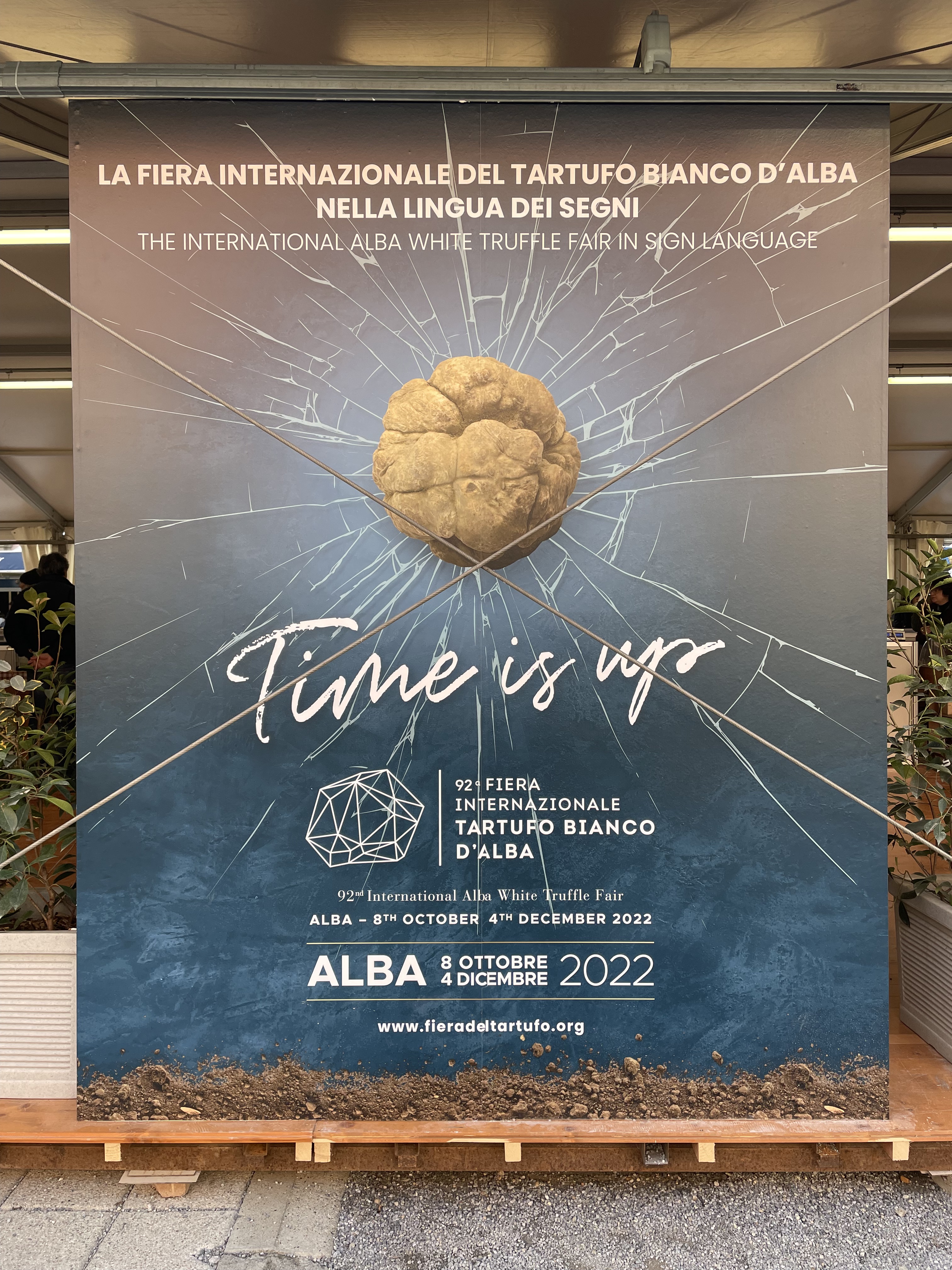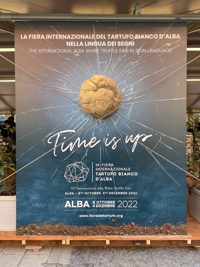 “Time’s up” said the big white cursive letters on a royal blue background emblazoned with the misshapen meteor of the white Alba truffle. How subtle”. I figured they were referring to the fact that time to enjoy the annual festival for the White Truffle of Alba was, obviously, almost up. The November Piemontese air was crisp only in temperature as the Cortile della Maddalena was heavily perfumed with the heavy musk of the tuber, a single piece of which can fetch prices in the thousands. Stalls had clear cases lain out with the little globules sitting on pieces of paper marked with weight and price and all around milled people with far more years – and euros – than I. Older Italian groups smartly dressed in button-downs and colorful scarves. Chinese and Korean families whose children’s palates were trained on the fine nuances of tuber magnatum pico at an early age. There was also the one portly American in a sports jersey, wild hair tucked beneath a baseball cap, who conducted his business of purchasing the fungal boogers loudly for all to hear. Also present were the young locals who, like myself, were willing to shell out the equivalent of several full meals for a few shavings of the famed white lumps. Granted shavings here were more generous, even if lain atop a simple dish of fried eggs or the local tajarin. The odor and taste too were far more potent than the ones more dramatically flourished but perceptibly weaker in more metropolitan locales. It was a spectacle for sure and worth the hype once you put aside the thought that all this was for a symbiote whose name in Latin meant “a swelling”.
