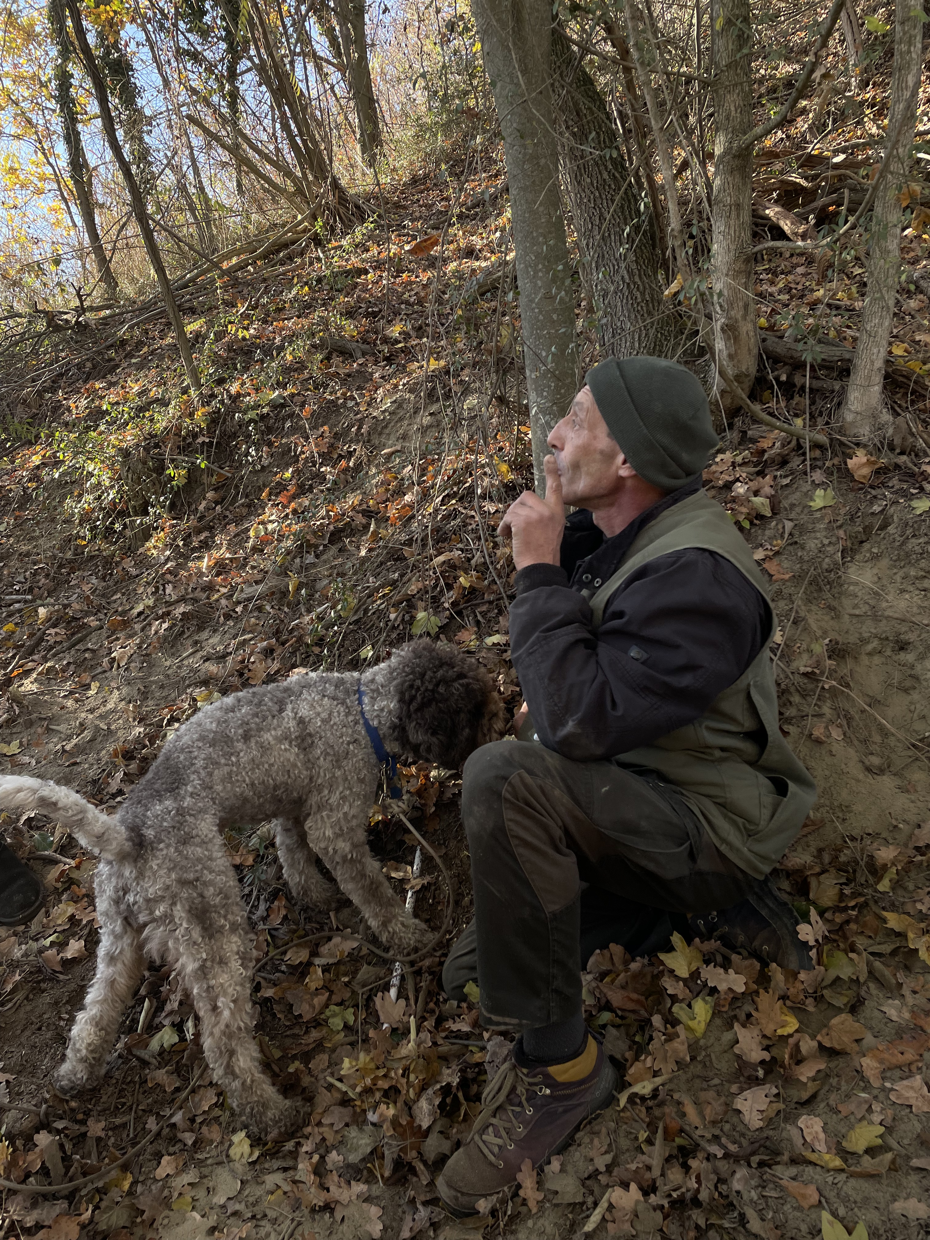 Later that week, I found myself in front of a church framed by the cracking sound of falling leaves. I stood opposite a smiling man in a worn hunting vest and a boisterous dog with muddy paws named Charlie. Our Trifolau, truffle hunters, for a daytime hunt that I and a few other tourists were assured was not staged. The ground was moist from the light rains of the past few weeks and our guides explained in translated Italian the basics of the truffle hunt: how they were normally done at night, what the dogs smell for, how the truffles were carefully dug out from where they seemed to blend into dirt and root, the differences between the white truffle and the black summer ones, and the fact that no one’s managed to successfully cultivate the white truffle. The cool air would periodically sink into the strong, wet, hay-like mustiness that even we would pick up with our inferior noses. There was no frantic barking from Charlie as if he were hunting live prey. Just a brisk trot over to the right root for the experienced hunter to dig under in exchange for a treat.