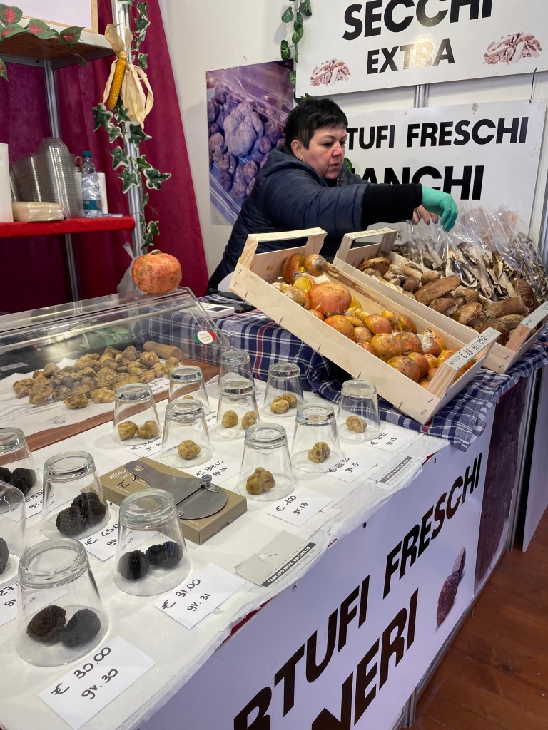 Conversations as we continued on a slight incline turned to the matters of the truffle not apparent in the festival grounds below or in the many advertisements online: of the fierce competition that would lead to hunters kidnapping and poisoning dogs, of a public bamboozled into paying exorbitantly for inferior truffles and truffle oil thousands of miles away in places that were Italian by exaggerated theatrics only, of a once simple weekend activity of kids and dogs picking through the forest floor changed forever by industry. It was certainly eye-opening though paling in comparison to the realization that I had completely misunderstood the festival theme.
